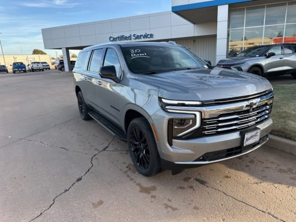 **BRAND NEW 2025 Chevrolet Suburban Premier!** Sterling Gray Metallic 2025 Chevrolet Suburban Premier 4WD 10-Speed Automatic with Overdrive 3.0L V8 Diesel Turbocharged OHV 16V LEV3-ULEV50 355hp 2-Speed Active Electronic AutoTrac Transfer Case, 3rd Row 60/40 Power-Folding Split-Bench, 4-Way Power Driver Lumbar Seat Adjuster, 4-Way Power Front Passenger Lumbar Seat Adjuster, 8-Way Power Front Passenger Seat Adjuster, Advanced Trailering Package, Auto-Dimming Inside Rear-View Mirror, Black Mirror Caps (LPO), Black Name Plates (LPO), Blind Zone Steering Assist w/Trailering, Bose 10-Speaker Surround w/CenterPoint, Bright Front & Rear Door Sill Plates, Chrome Door Handles w/Body-Color Strip, Chrome Mirror Caps, Dual Exhaust System, Dual-Pane Power Panoramic Sunroof, Front & Rear Black Bowtie Emblems (LPO), Front LED Fog Lamps, Heated 2nd Row Outboard Seats, Heated Driver & Front Passenger Seats, Heated Power-Adjustable Outside Mirrors, Heated Steering Wheel, Hill Descent Control, Hitch View w/Pan/Zoom Image Adjustment, Integrated Trailer Brake Controller, LED Headlamps w/LED Daytime Running Lamps, LED Tail Lamps, License Plate Front Mounting Package, Max Trailering Package, Memory Settings, Perforated Heated & Ventilated Seats, Power Release 2nd Row Bucket Seats, Power Tilt & Telescopic Steering Column, Power-Sliding Center Floor Console, Preferred Equipment Group 1LZ, Premium Dark Essentials Package (LPO), Rear Power Liftgate, Smart Trailer Integration Indicator, Sun & Tow Package, Universal Home Remote, Wheels: 22 Multi-Spoke Gloss Black (LPO), Wheels: 22 Steel (LPO), Wireless Phone Charging.
