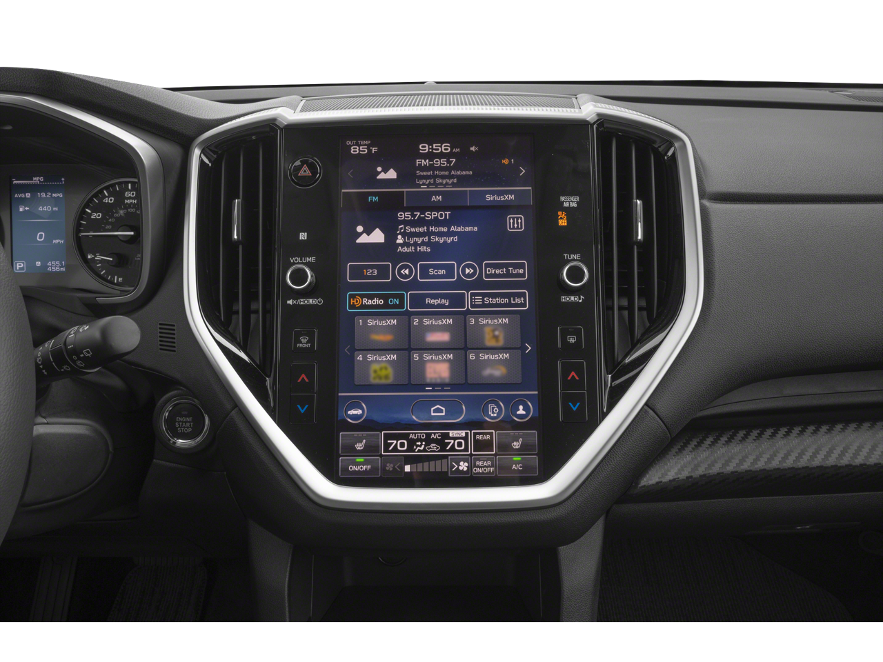 - Radio: Subaru STARLINK 11.6" Multimedia Plus System -inc: AM/FM stereo HD Radio, multi-touch gesture high resolution display screen, voice activated controls, Bluetooth® audio streaming and hands-free phone connectivity w/SMS text messaging connectivity (refer to subaru.com for cell phone compatibility), Near Field Communication (NFC), iPod control capability, SiriusXM All Access radio (4 months free trial/subscription required after), SiriusXM Travel Link (4 months free trial/subscription required after), smartphone integration for Android Auto and Apple CarPlay w/full screen view and wireless connection and STARLINK cloud applications, USB and Over The Air (OTA) audio system update, steering wheel control switches for audio and Bluetooth®, 6 speakers, 3.5mm illuminated auxiliary input jack and illuminated USB A and C input/charge ports