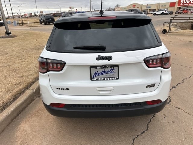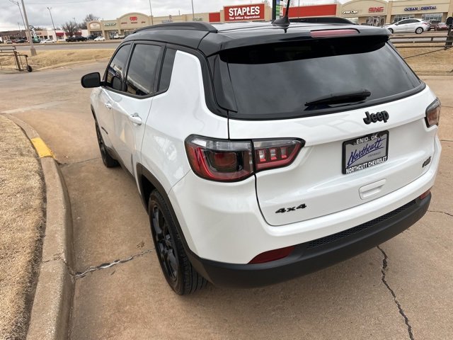 CARFAX One-Owner. Bright White Clearcoat 2023 Jeep Compass Altitude 4WD 8-Speed Automatic 2.0L I4 DOHC Low Miles, 2nd Row USB Type A/C Charge Only, Air Conditioning ATC w/Dual Zone Control, All-Season Floor Mats, Altitude Special Edition, Auto-Dimming Rear-View Mirror, Black Day Light Opening Moldings, Black Roof, Convenience Group, Foot Activated Open 'N Go Liftgate, Gloss Black Badges, Gloss Black Grille & Crosshairs, Heated Front Seats, Heated Steering Wheel, Humidity Sensor, Light Tungsten Interior Accent Stitching, Piano Black Interior Accents, Power 2-Way Driver Lumbar Adjust, Power Adjust 8-Way Driver Seat, Power Liftgate, Quick Order Package 29B Altitude, Remote Start System, Reversible Carpet/Vinyl Cargo Mat, Universal Garage Door Opener, Wheels: 18 x 7 Gloss Black Painted Aluminum, Windshield Wiper De-Icer.